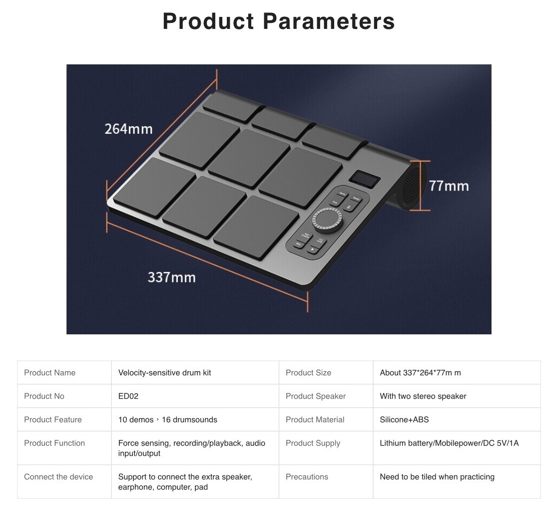 冬日優惠❄️Konix Electronic Drum 桌上電子鼓 ED02 - 低至65折 - HKD $698 (正價HKD $1098)